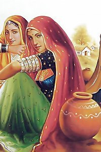 Indian Paintings: Rajasthani girls 01